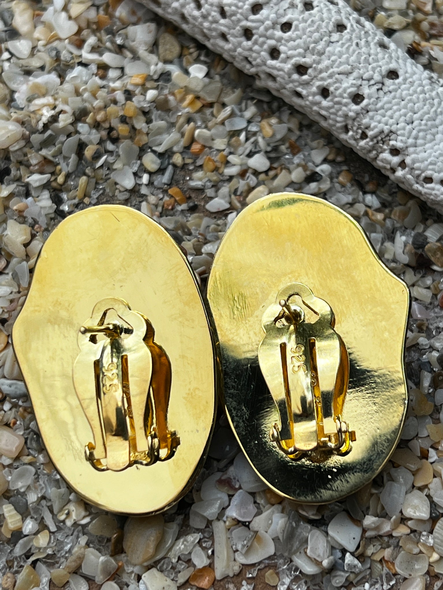 Unusually small, soft pink Scallops. Set with deep purple, emerald-cut Amethysts - Signed CSS - Vermeil - 1.5" long - Clip/Post Back