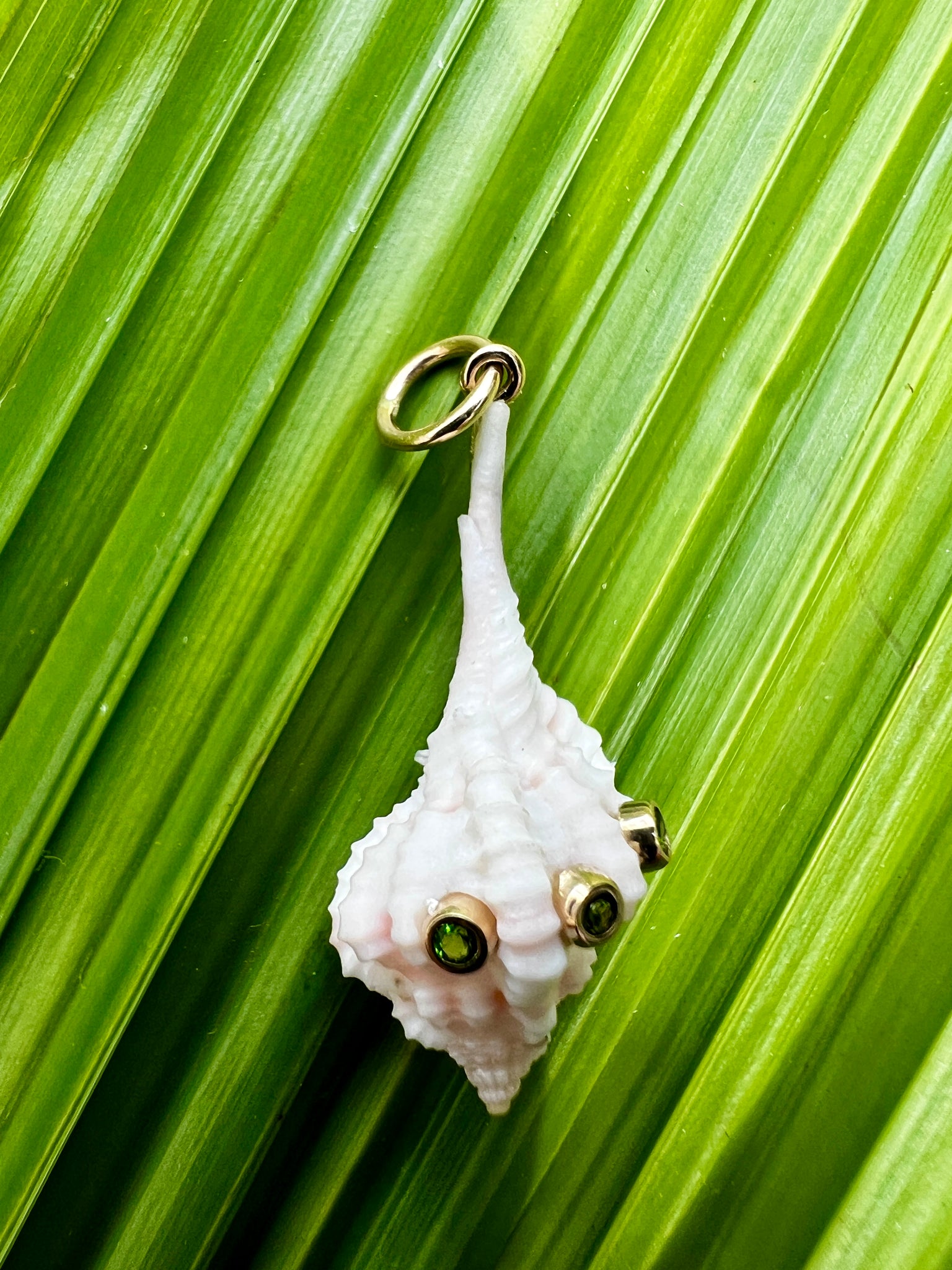 Precious little Whelk, set with green Tasvorite Garnets - 1" Drop