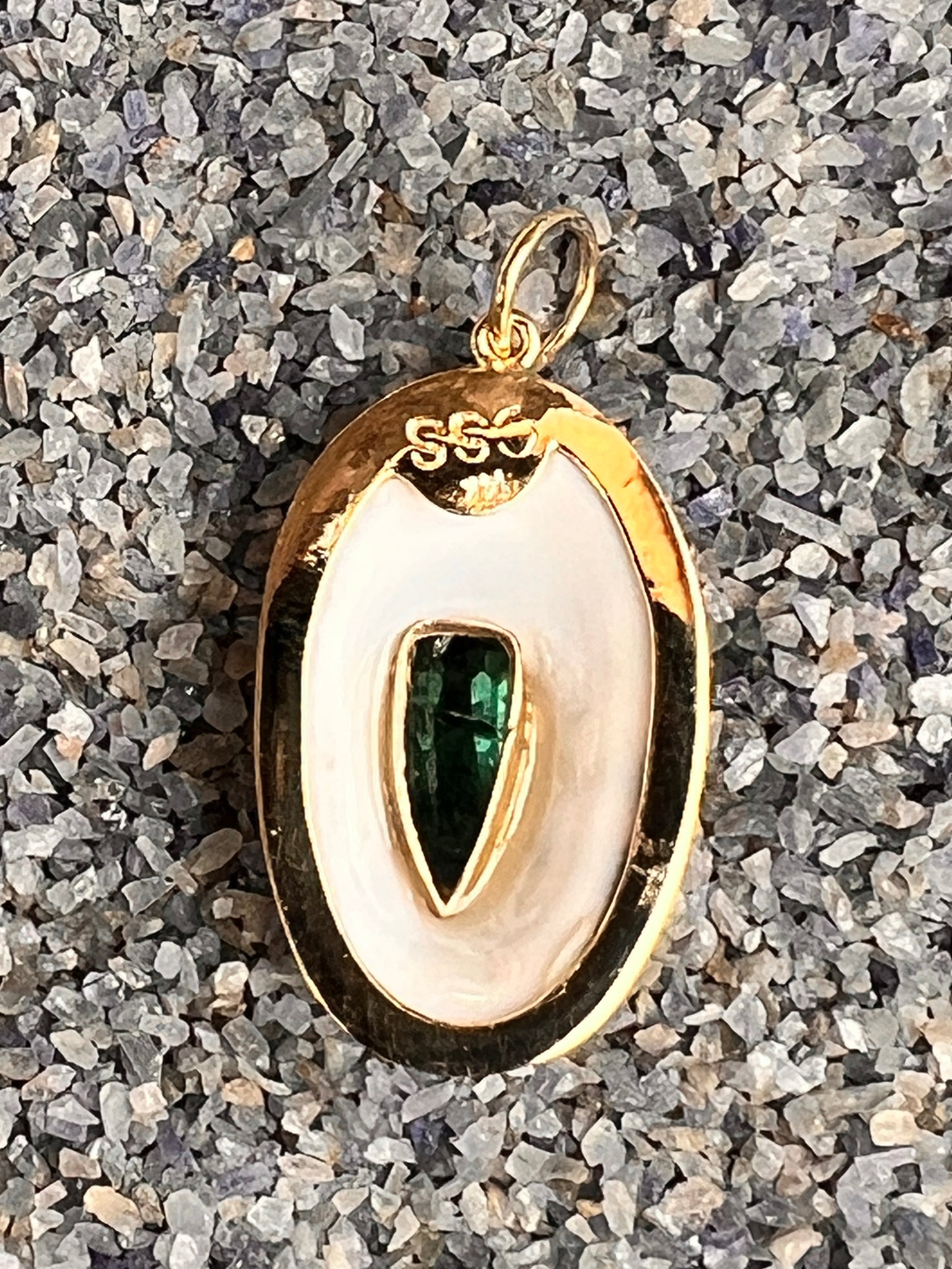 Magical, little, pink, antique Limpet Lorelei Charm set with a beautiful Paraba Tourmaline cut in Miner style - signed CSS - 14-karat Gold - 1.25" Drop