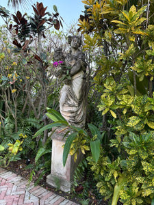 Plinths are 19"W by 30" H    Statues are each about 56"