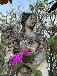 Unusual set of life-sized, hand-carved, Italian statues of personified Four Seasons,  These were brought from Verona, Italy, about 25 years ago, and they already had some age then, so I imagine the set is about 75 years old. The unusual aspect of this beautiful Limestone set is that it has two men as well as two women representing the Seasons.   They are good looking and nicely carved.